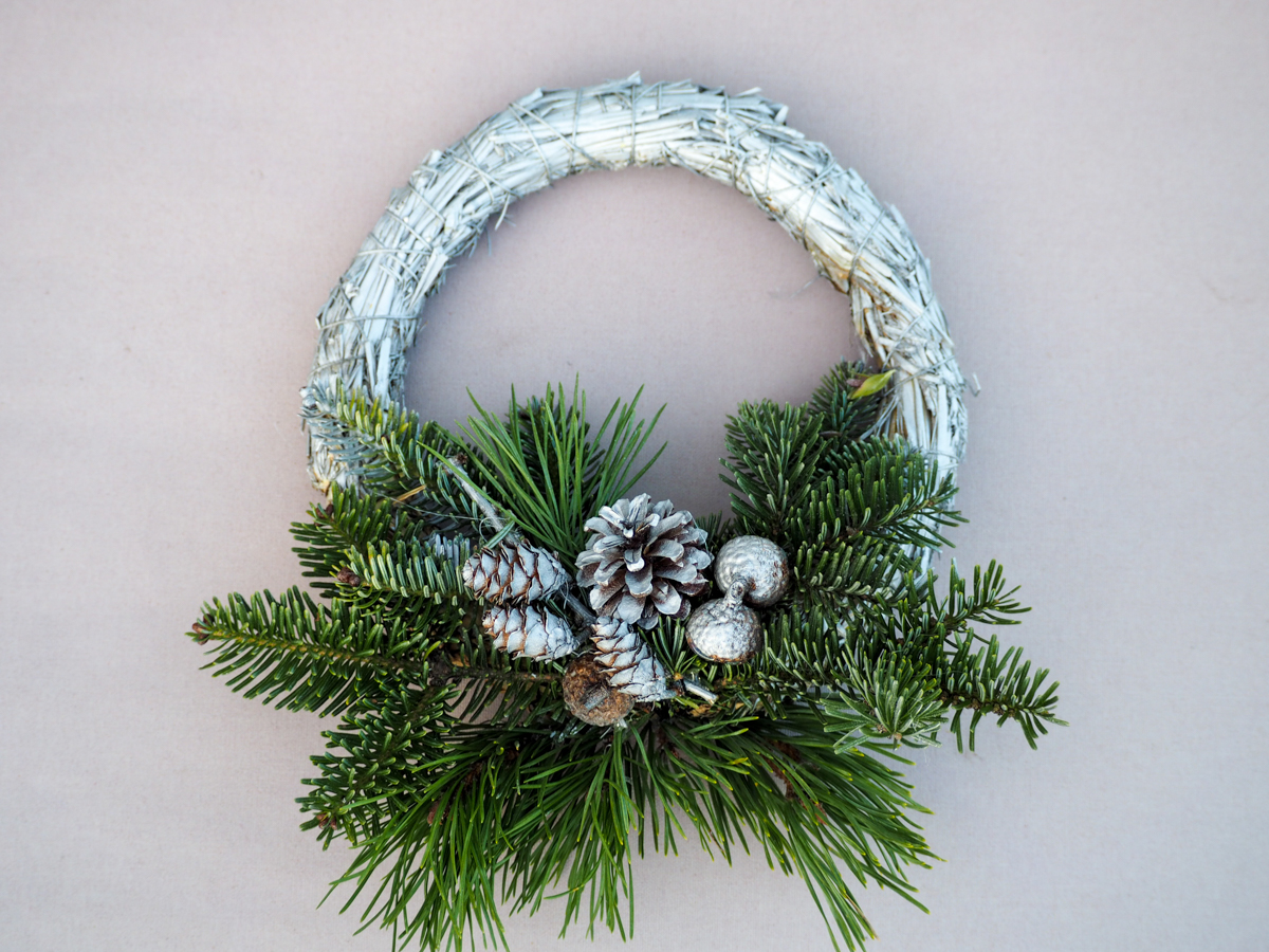 Pamatnei var izmantot klūgas vai salmu vainagu, lai būtu viegls un ērti piekarināms pie durvīm.