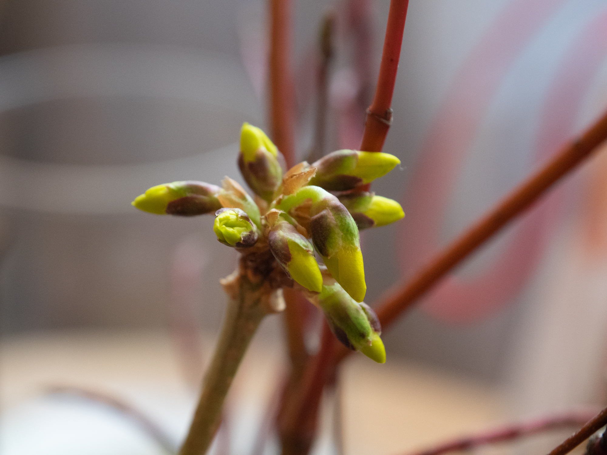 Zari dzeltenīgi zaļi, ar daudz pumpuriem, izmanto izplaucēšanai agri pavasarī.