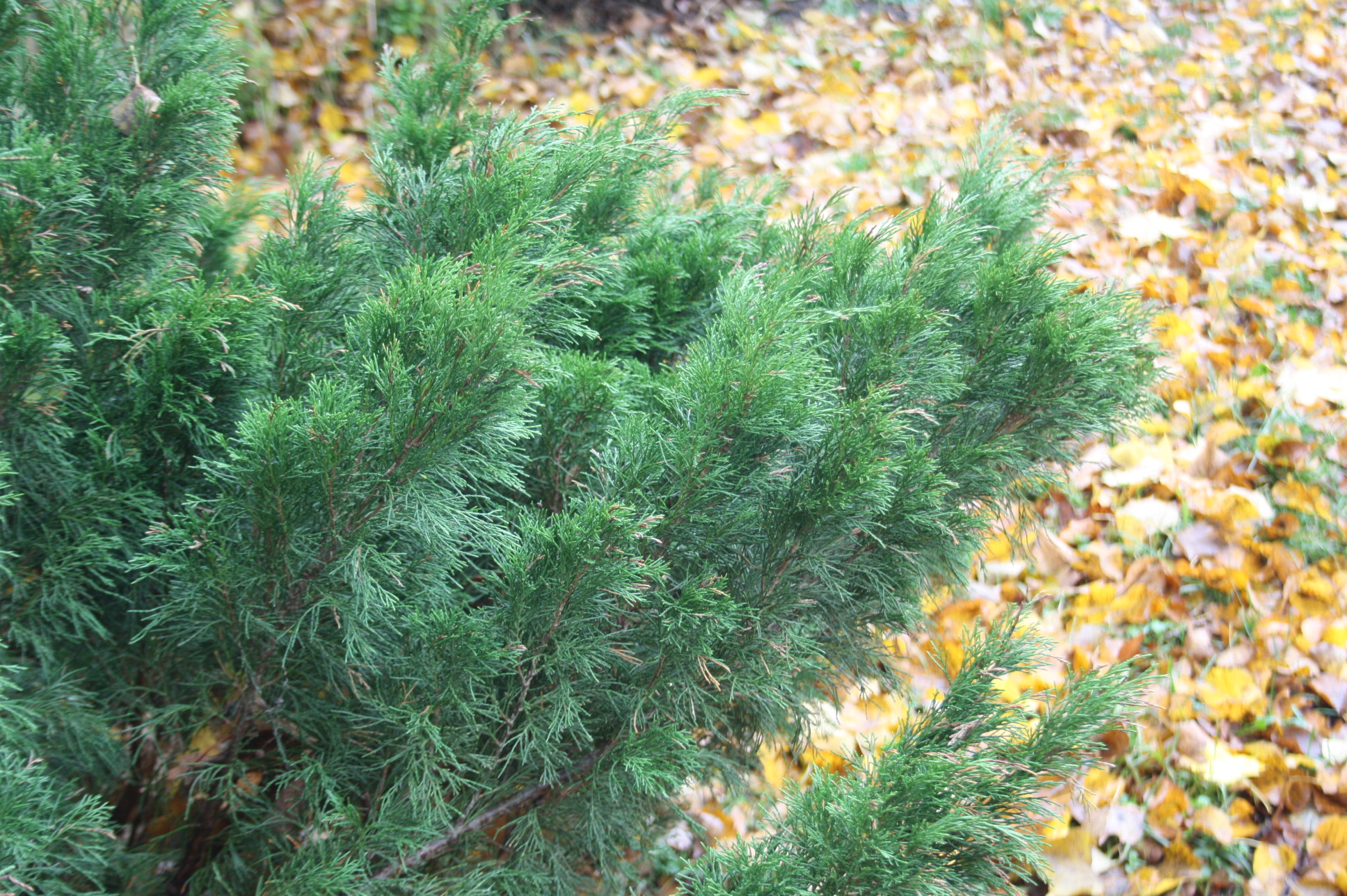 Tumši zaļi, vai zilgani, blīvi zari, rudenī pieejami arī zari ar tumšām vai zaļas krāsas kadiķogām. Skujai piemīt, īpatnēja ēteriska smarža.