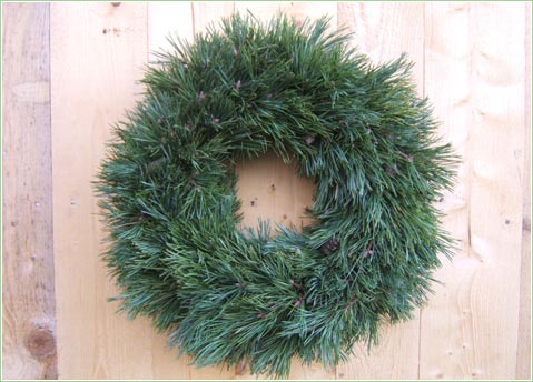 Ir pieejamas priežu zaru vainagu sagataves.