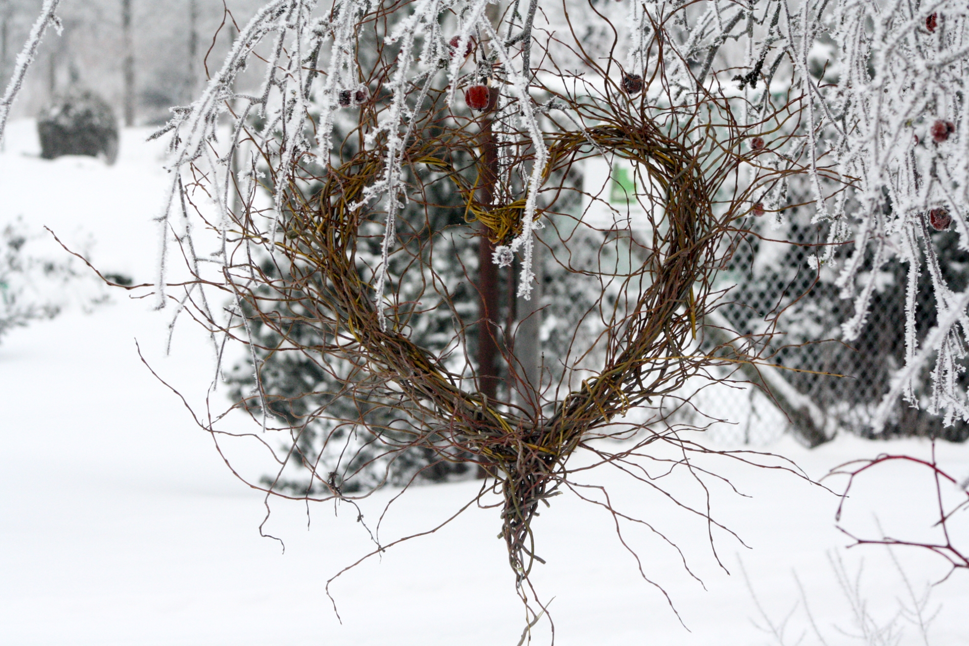 Dekoratīvs, sirds formas dekors, izgatavots no vītola škirnes ‘Tortuosa’ zariem.