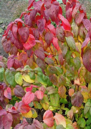 Lapas: lielas, plaukstot brūngansarkanas, vasarā matēti zaļas, rudenī purpursarkanas.