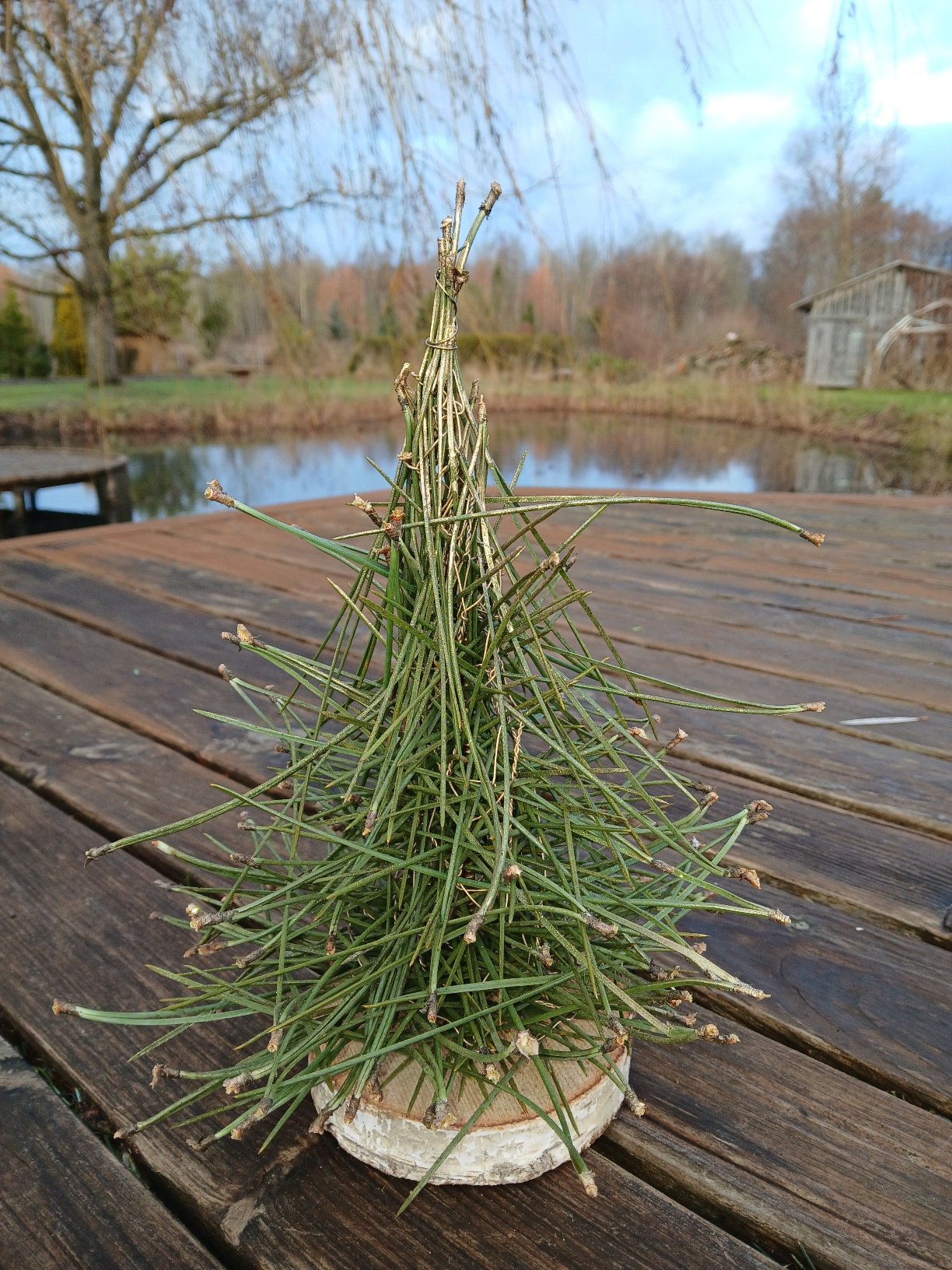 Eglīte izgatavota no melnās priedes skujām, H 30 cm.